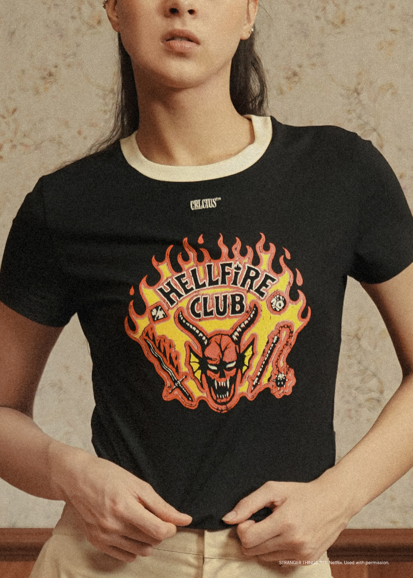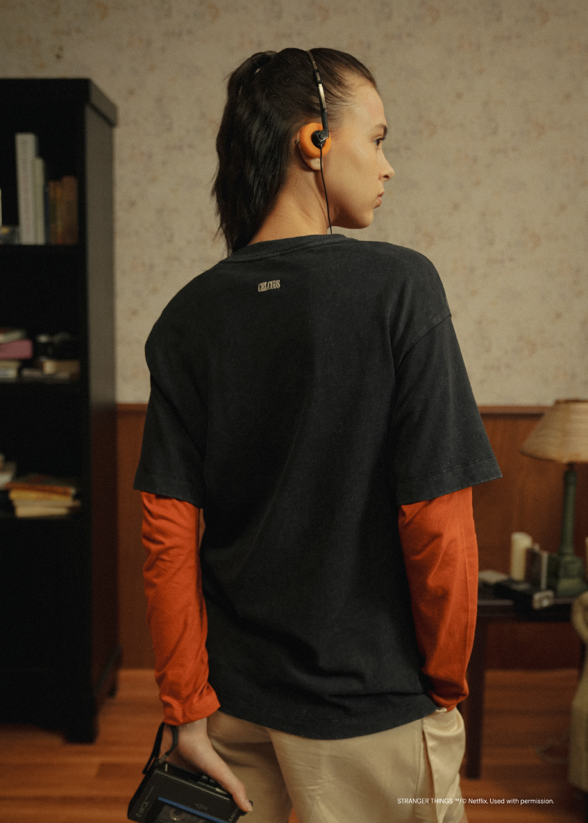 CELCIUS teams up with Stranger Things for a bold collaboration that fuses California cool with supernatural nostalgia. Drawing inspiration from the show's eerie 1980s Hawkins aesthetic and CELCIUS's signature laid-back edge, the collection delivers vintage-inspired silhouettes, bold graphics, and subtle nods to the Upside Down. Think retro detailing, 80s-style oversized tee, and washed garments that feel both timeless and otherworldly. Bridging two cult followings, this limited-edition drop captures the essence of everyday street style with a twist of sci-fi suspense—only from CELCIUS.